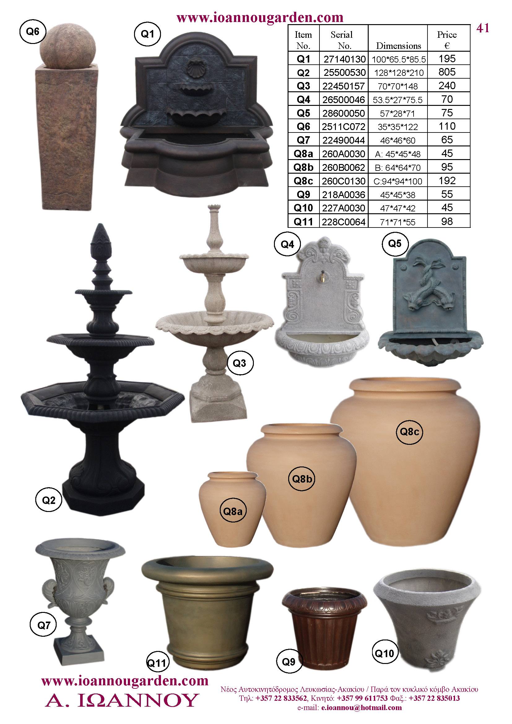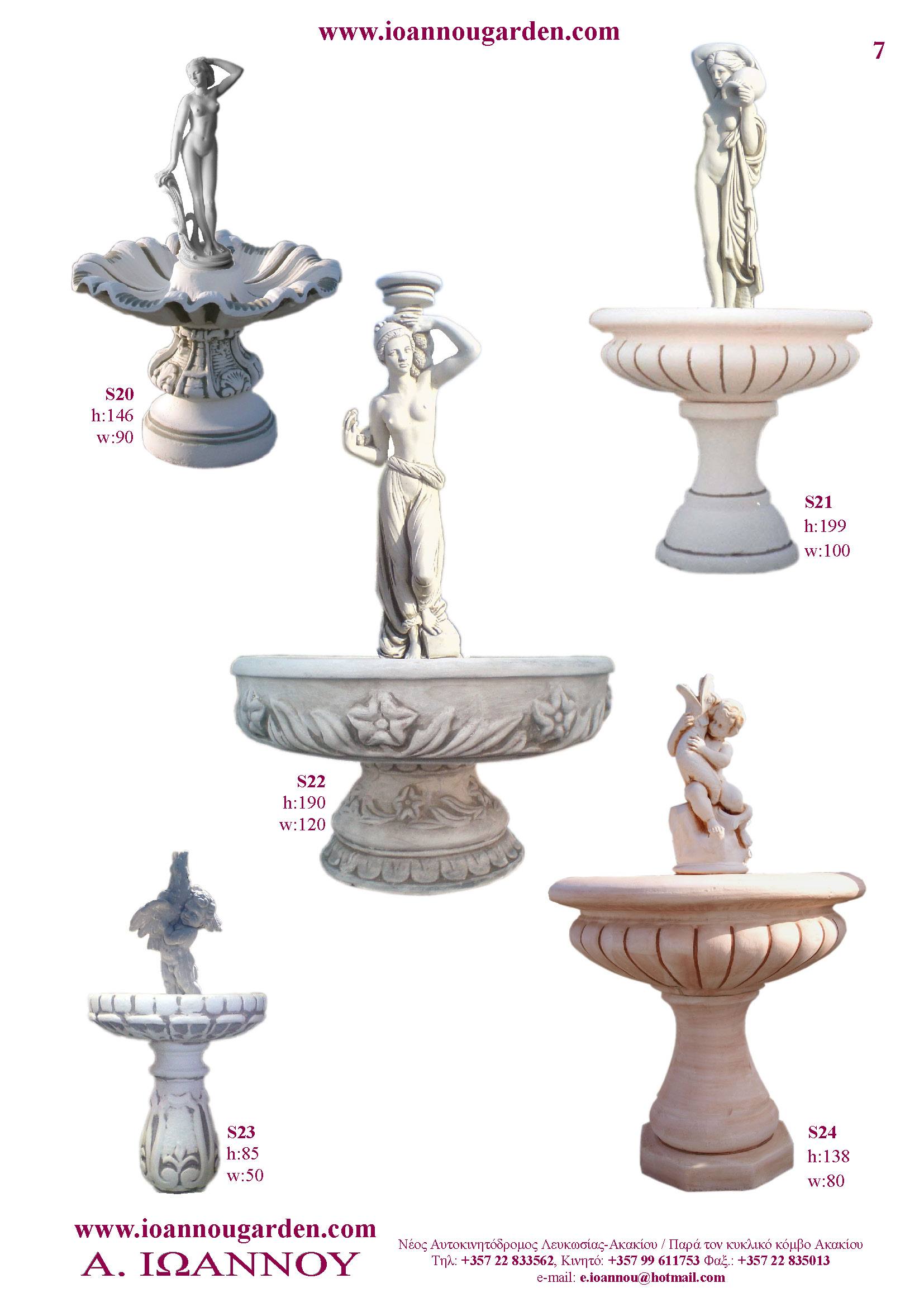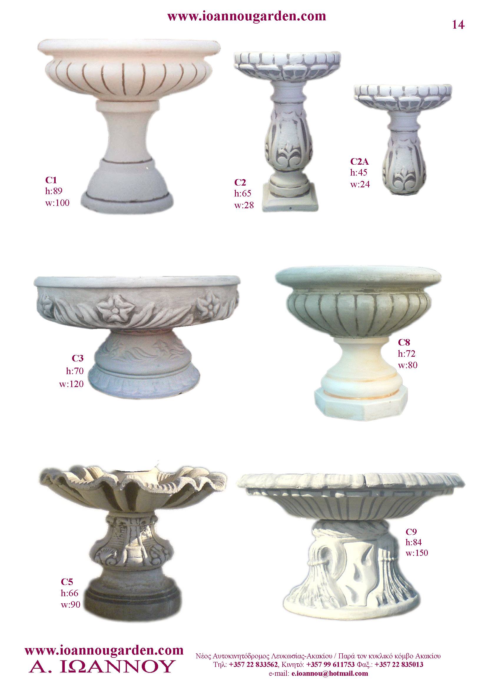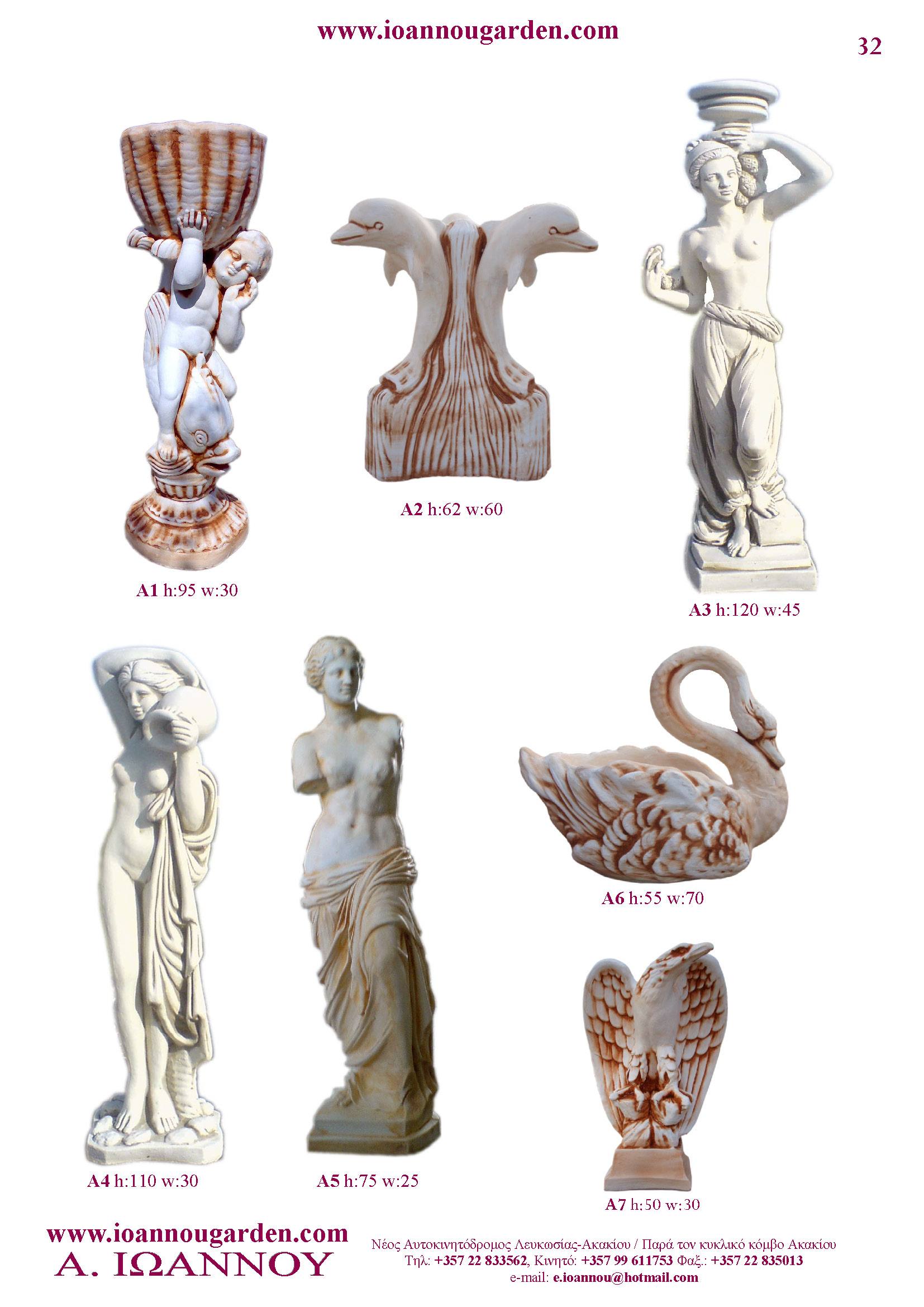 Αγάλματα & Σιντριβάνια Εσωτερικού και Εξωτερικού Χώρου * Ανθώνες - Γλάστρες * Βρύσες * Κίονες - Κολωνάκια * Εκκλησάκια - Φωτιστικά * Διάδρομοι κήπων - Διαχωριστικά * Στα μέτρα σας - Στο χρώμα σας