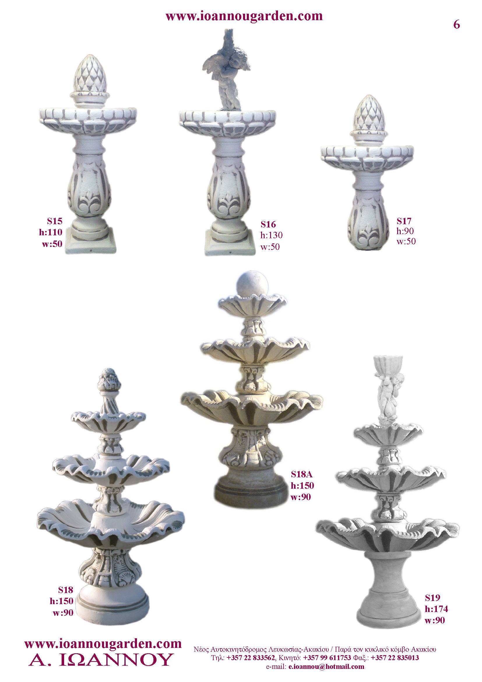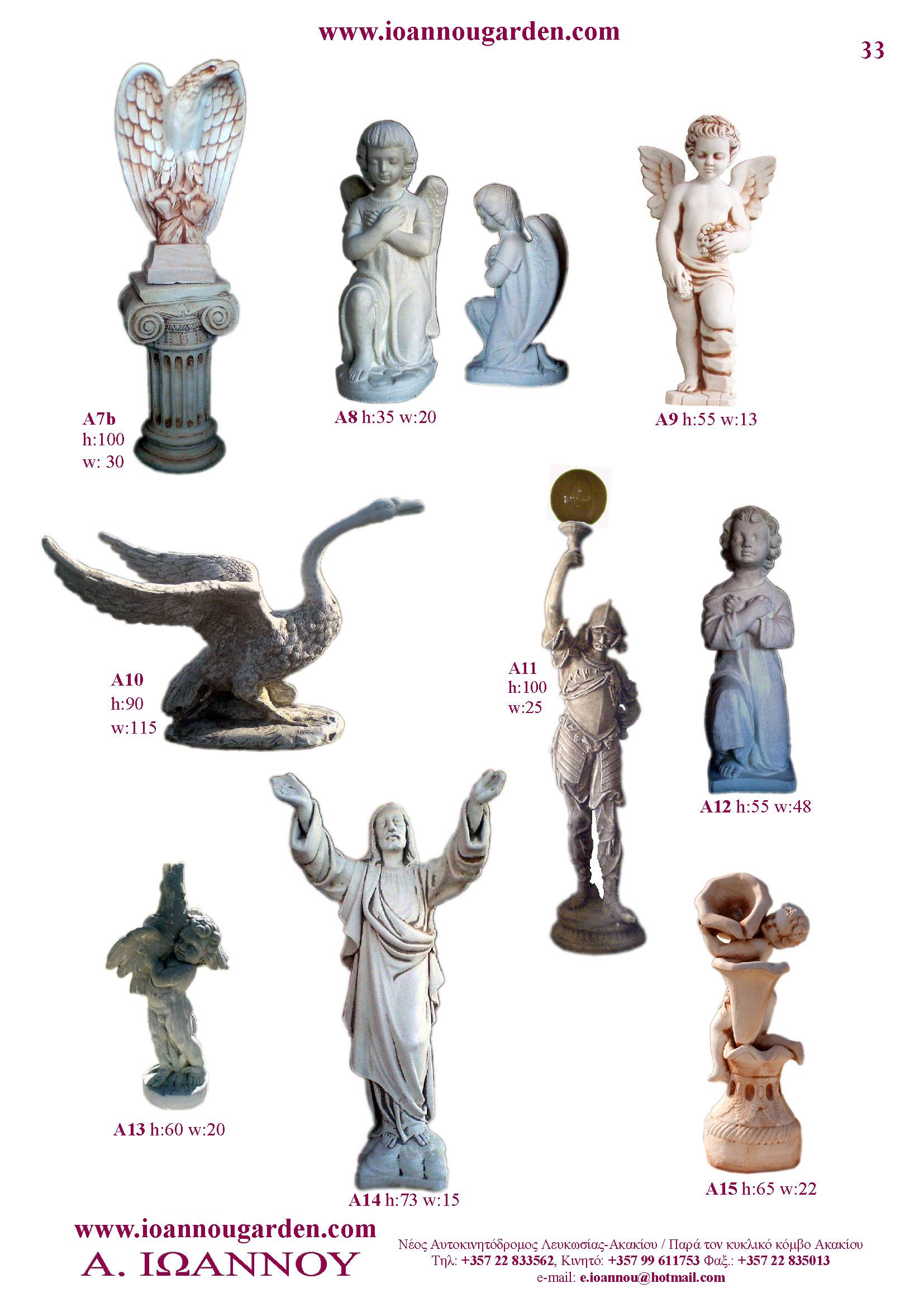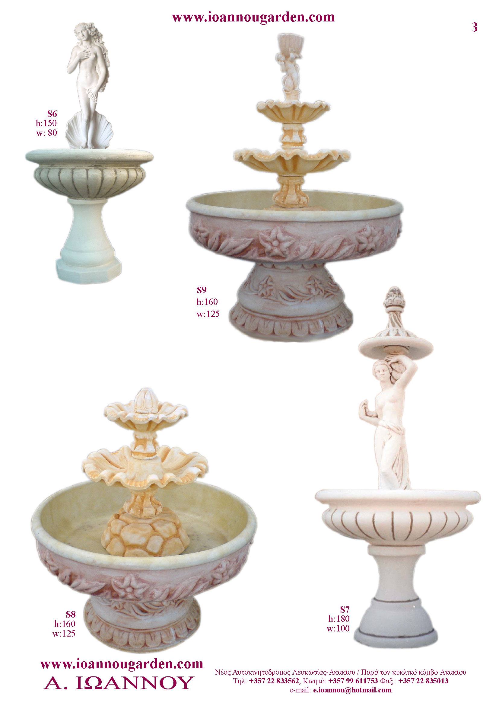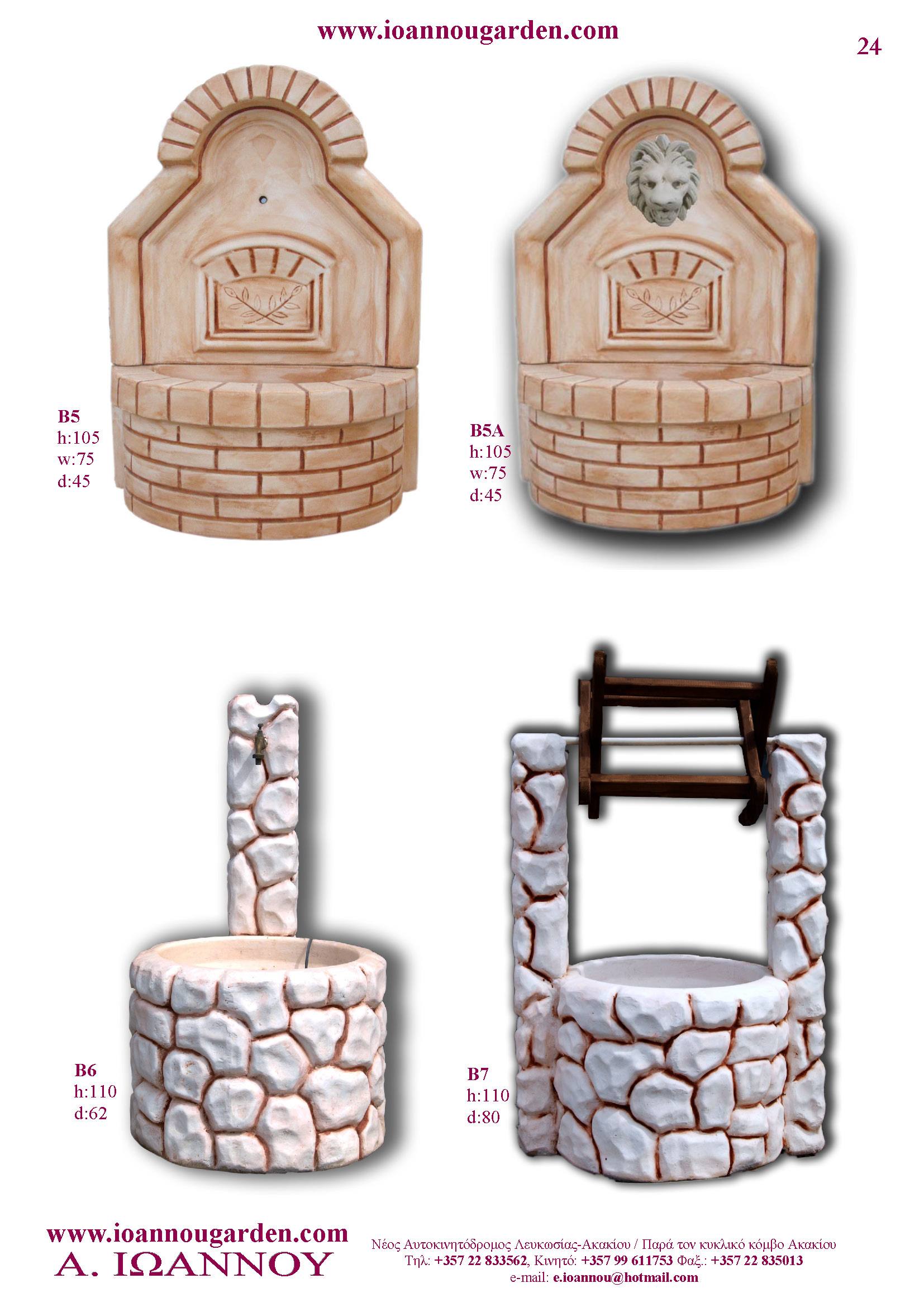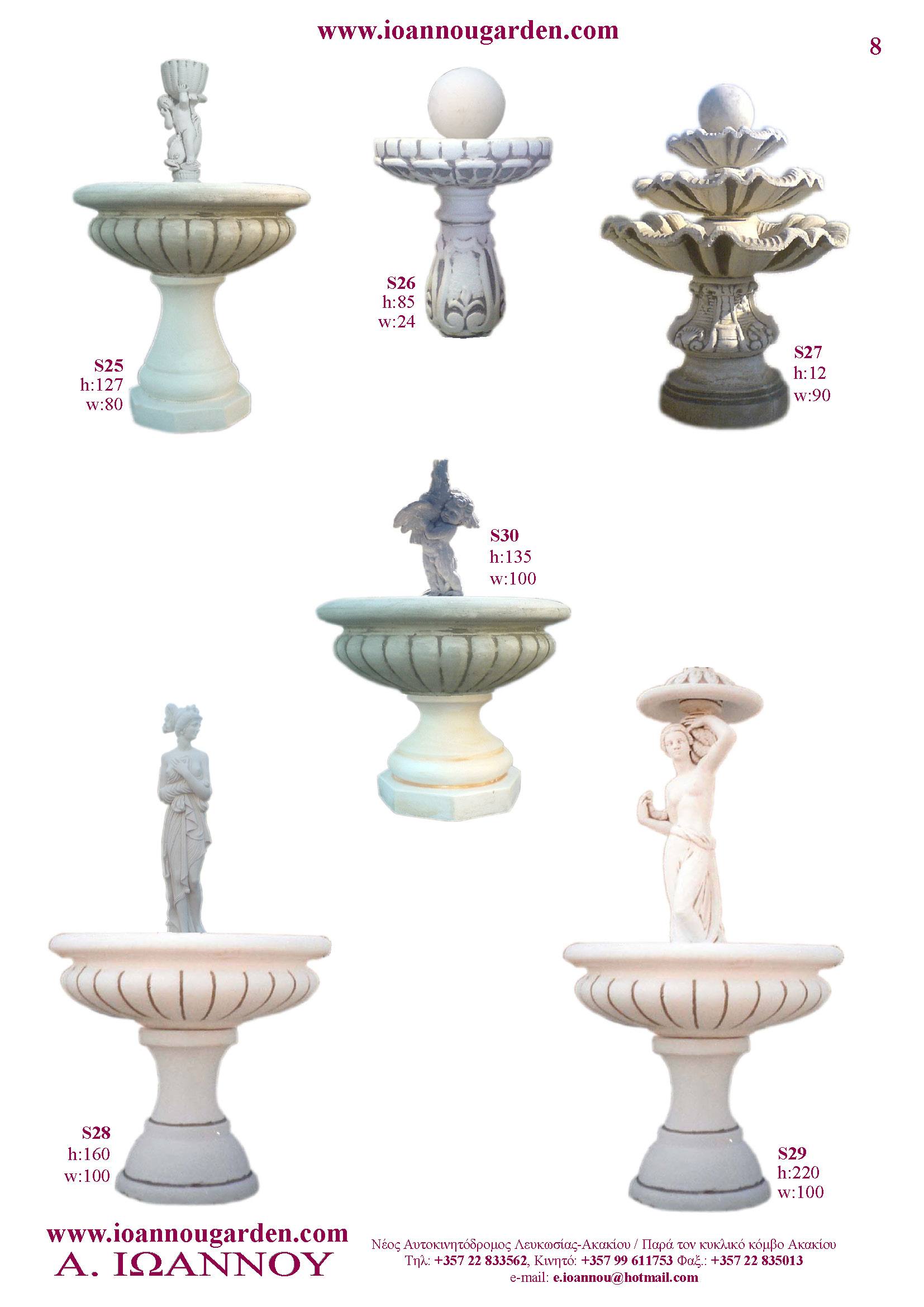 Αγάλματα & Σιντριβάνια Εσωτερικού και Εξωτερικού Χώρου * Ανθώνες - Γλάστρες * Βρύσες * Κίονες - Κολωνάκια * Εκκλησάκια - Φωτιστικά * Διάδρομοι κήπων - Διαχωριστικά * Στα μέτρα σας - Στο χρώμα σας