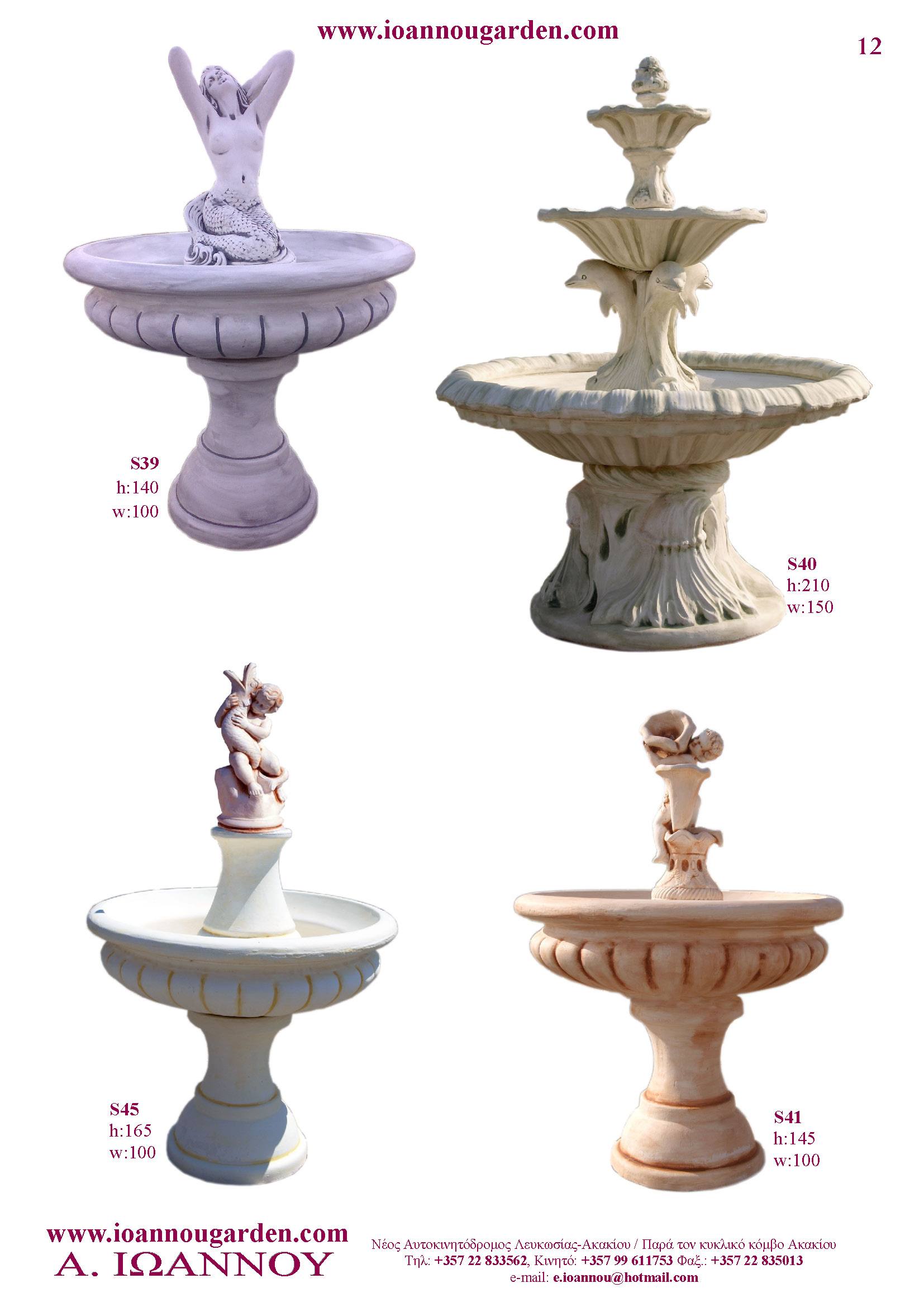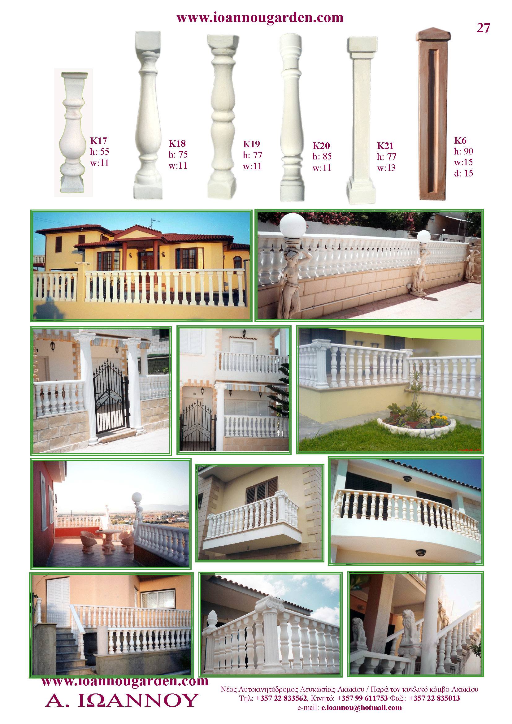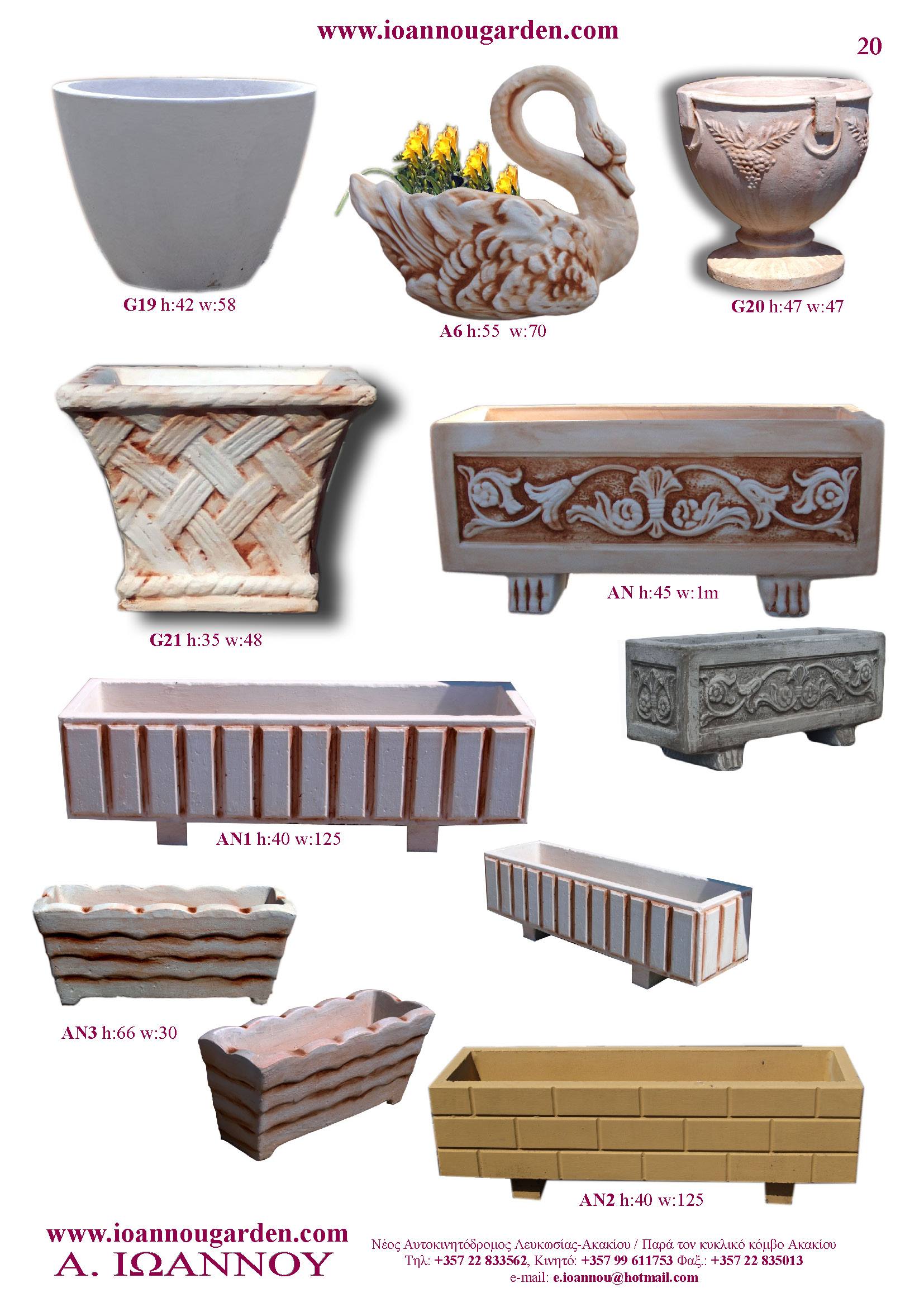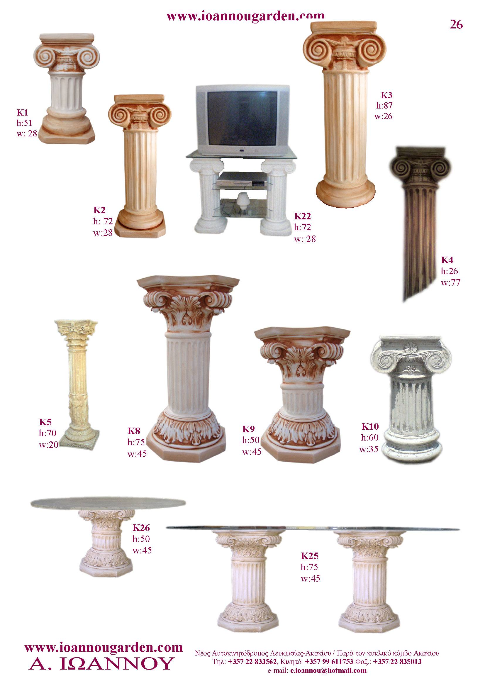 Αγάλματα & Σιντριβάνια Εσωτερικού και Εξωτερικού Χώρου * Ανθώνες - Γλάστρες * Βρύσες * Κίονες - Κολωνάκια * Εκκλησάκια - Φωτιστικά * Διάδρομοι κήπων - Διαχωριστικά * Στα μέτρα σας - Στο χρώμα σας