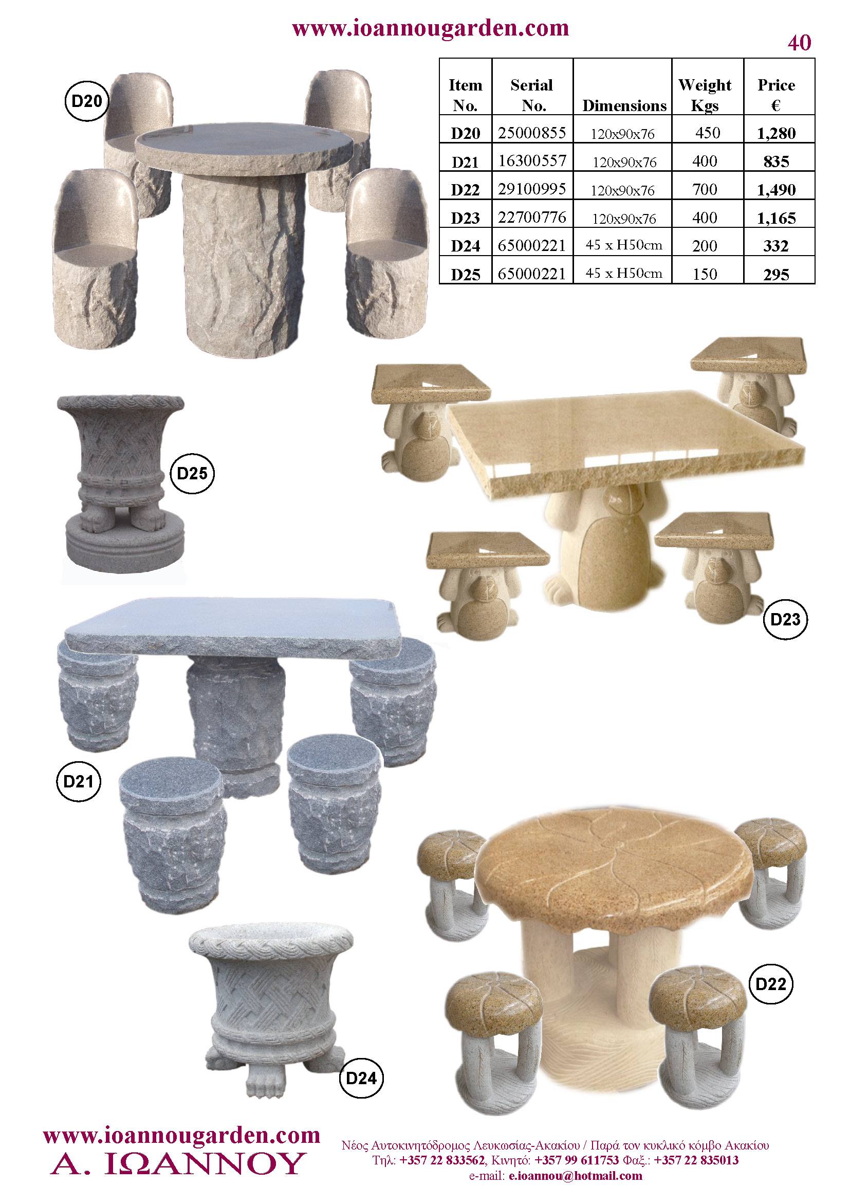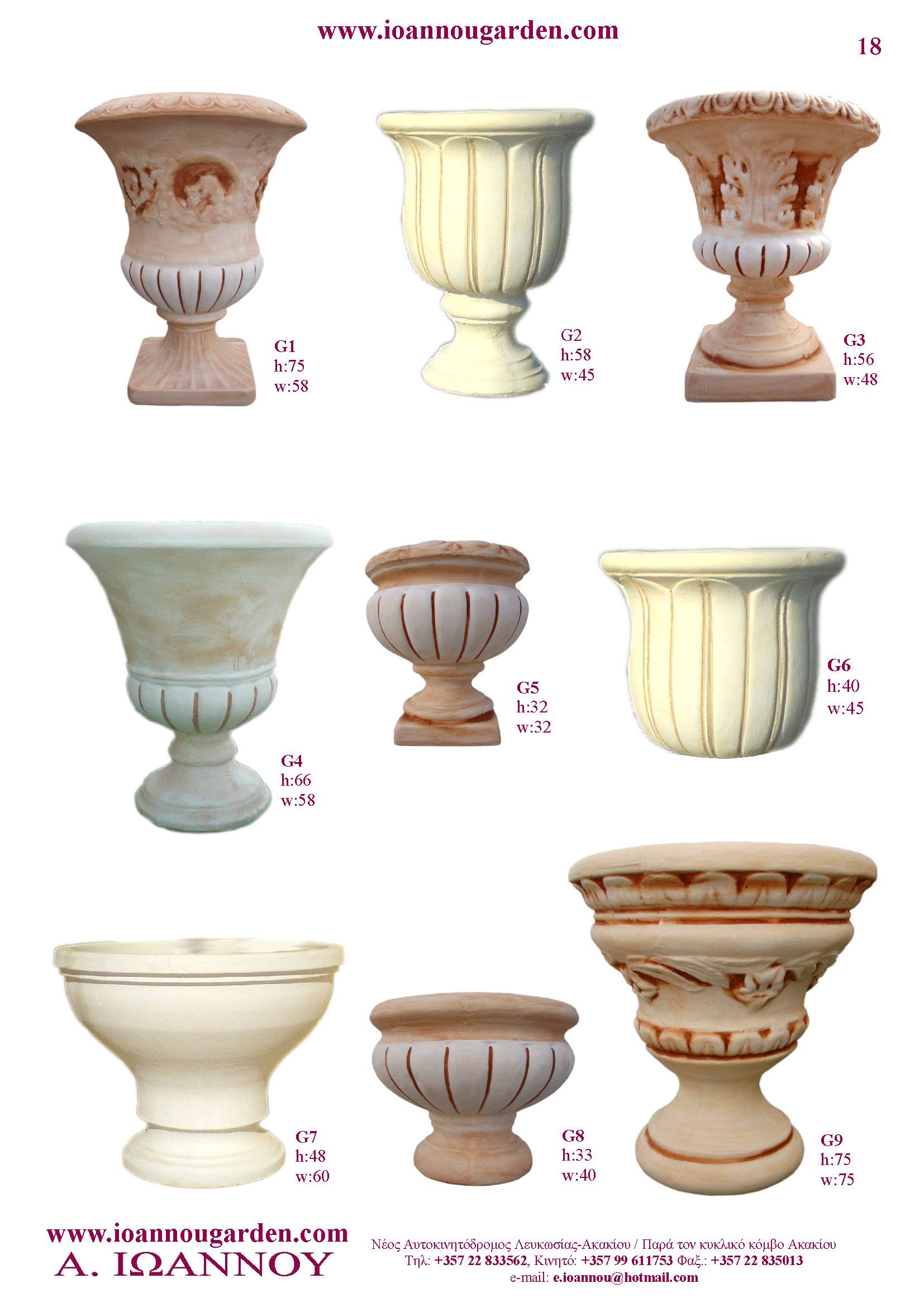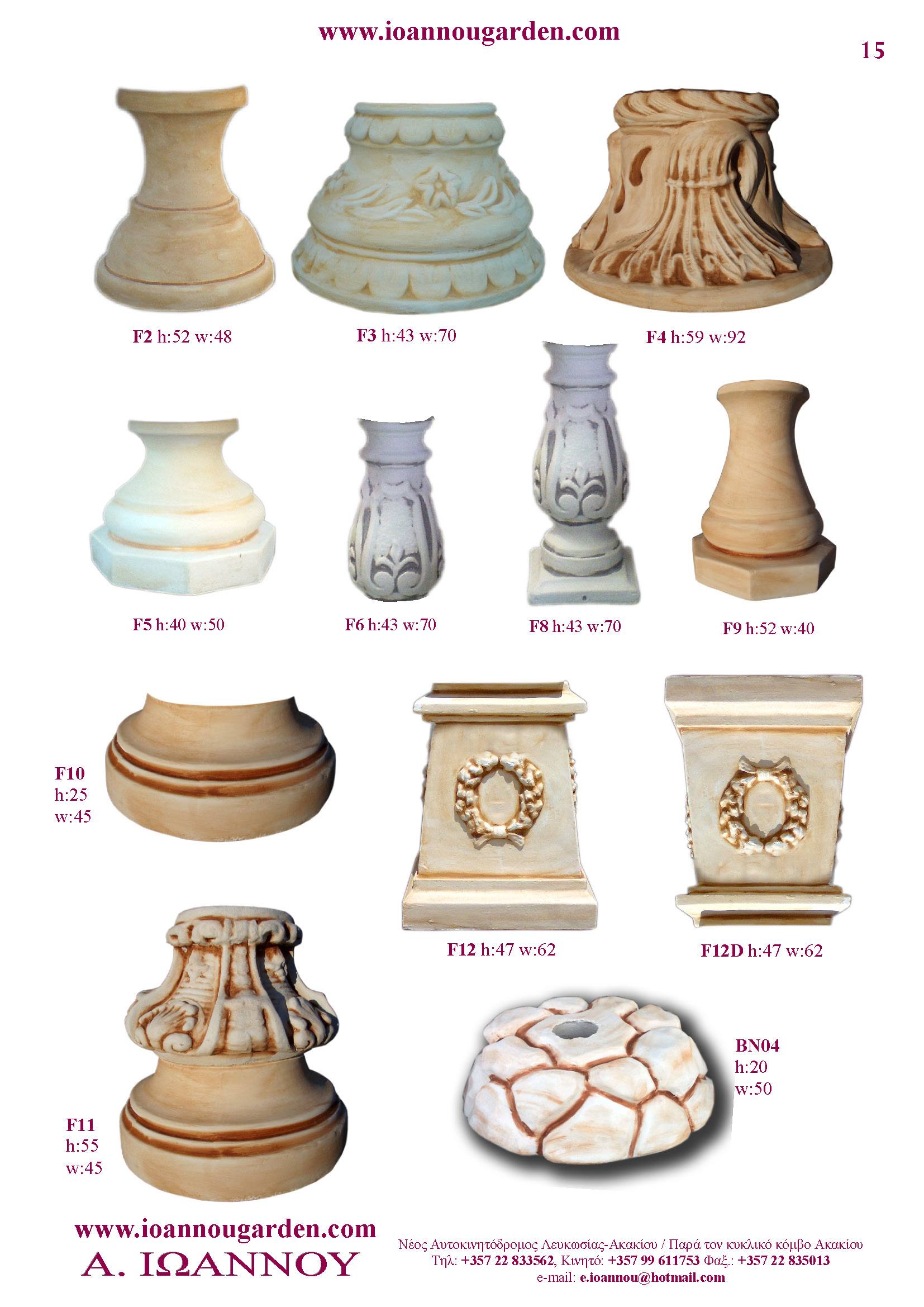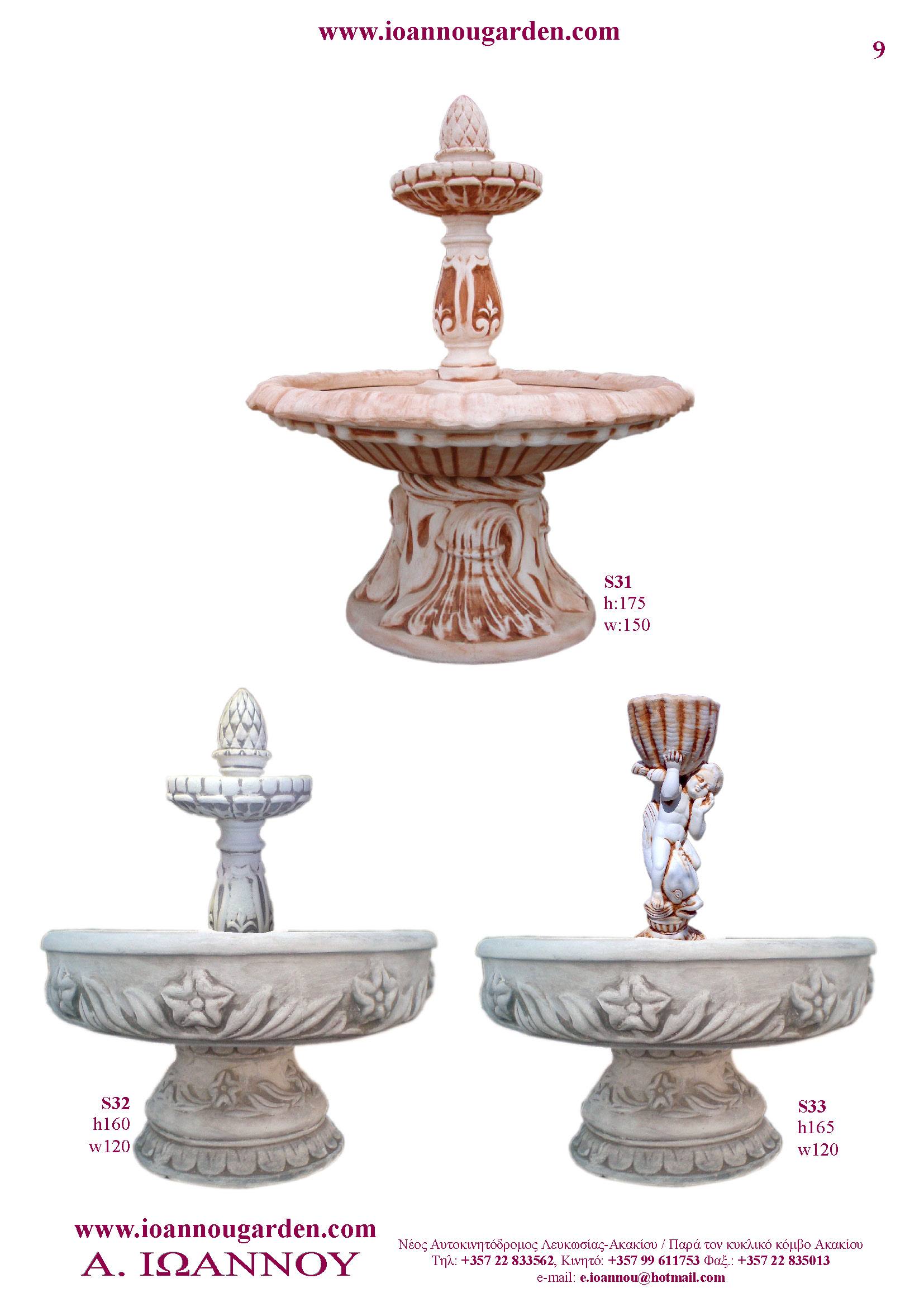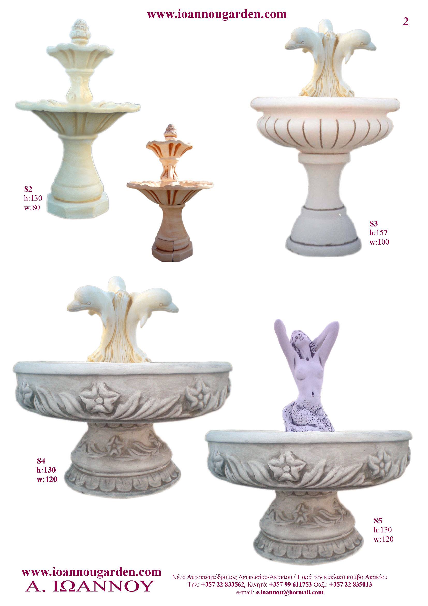 Αγάλματα & Σιντριβάνια Εσωτερικού και Εξωτερικού Χώρου * Ανθώνες - Γλάστρες * Βρύσες * Κίονες - Κολωνάκια * Εκκλησάκια - Φωτιστικά * Διάδρομοι κήπων - Διαχωριστικά * Στα μέτρα σας - Στο χρώμα σας