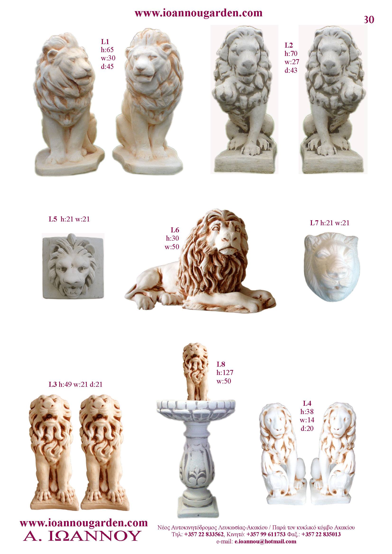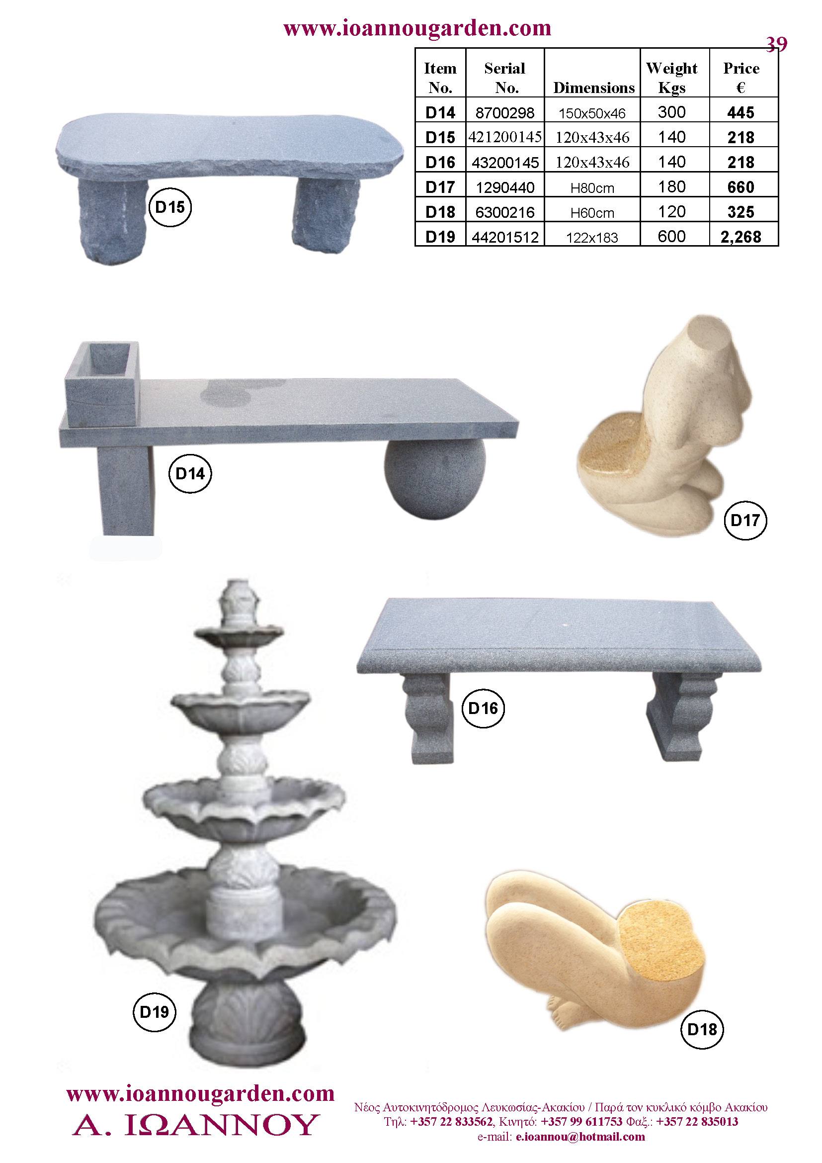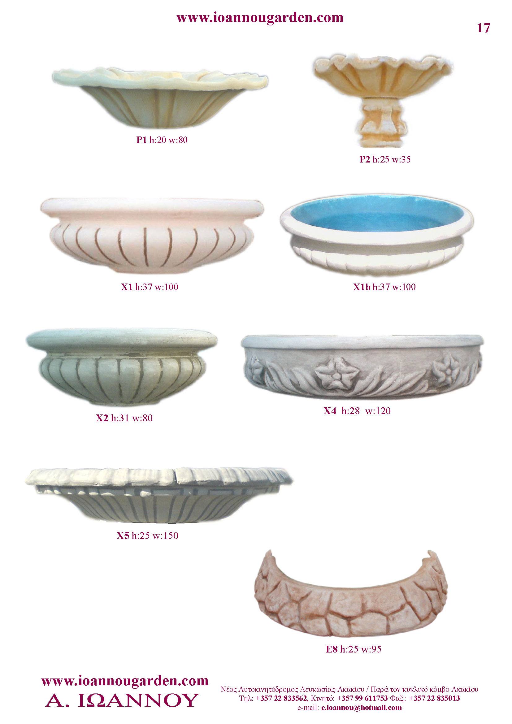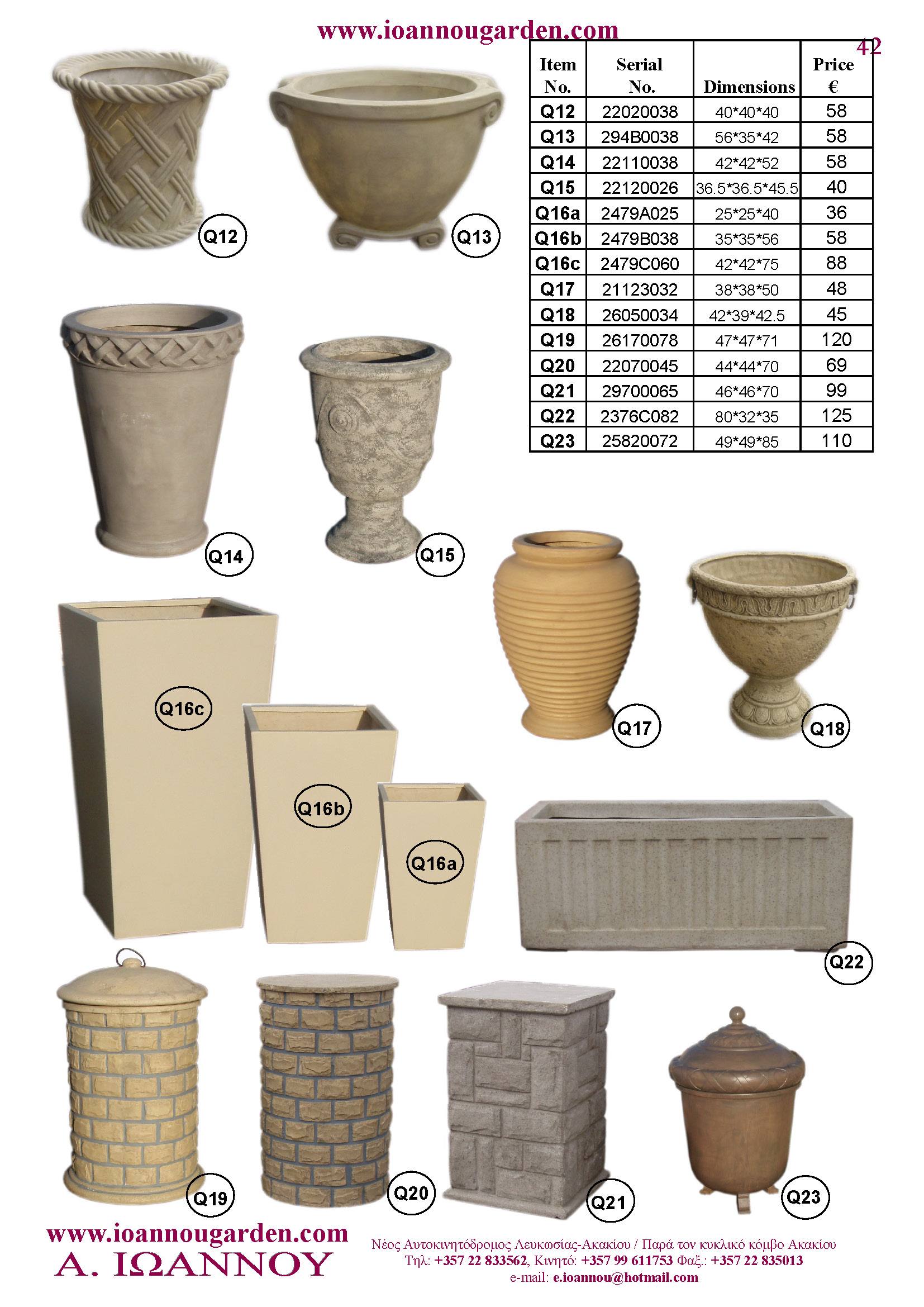 Αγάλματα & Σιντριβάνια Εσωτερικού και Εξωτερικού Χώρου * Ανθώνες - Γλάστρες * Βρύσες * Κίονες - Κολωνάκια * Εκκλησάκια - Φωτιστικά * Διάδρομοι κήπων - Διαχωριστικά * Στα μέτρα σας - Στο χρώμα σας